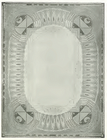 The three rug examples, one square and two rectangular, are extremely structured and relatively minimal, at least as far as decorative flourish is concerned. However, all of the examples appear as harmoniously balanced decorative projects. It is a mistake to think that because a design is symmetrical, controlled and stable, that it somehow lacks both the dynamism and creative life of a deliberately asymmetrical and casual approach. Behrens design work is a fascinating glimpse of work produced just a few years before he was involved in the foundation of the Deutscher Werkbund along with the likes of fellow German designers such as Richard Riemerschmid, Bruno Paul and Josef Maria Olbrich. The Werkbund became one of the most important foundation stones of the twentieth century's Modernist movement, and represented a fundamental shift in both the relationship between designer and manufacturer, which had often been problematic, and the adoption of a rationalist approach to design across many disciplines both industrial and interior.